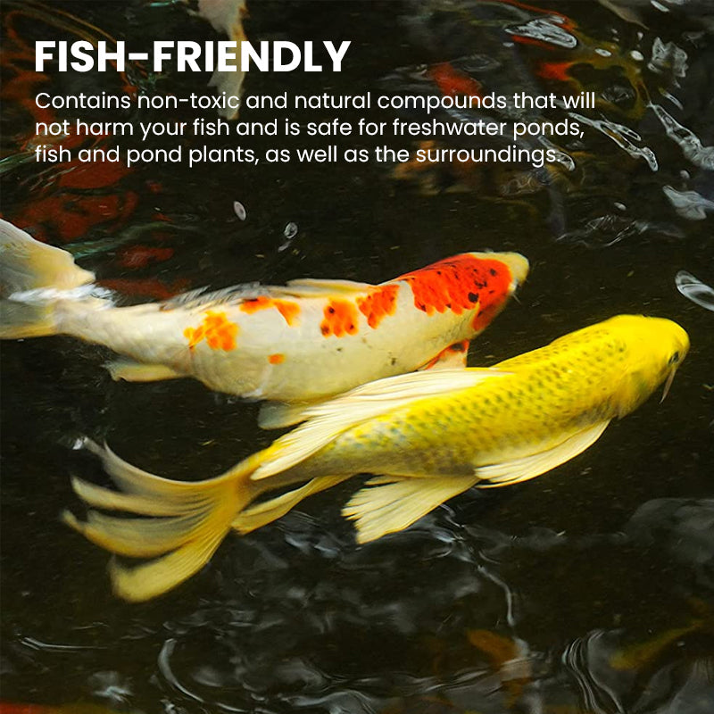 ●Balance the ecosystem: The cleaning agent not only removes unsightly aquatic organisms but also helps improve and balance the biological needs of the pond. Allowing you to bring back a safer and normal oxygen level to avoid a lot of stress for your fish. It even combines some beneficial bacteria and enzymes in the water body, which leads to decreased algae growth.