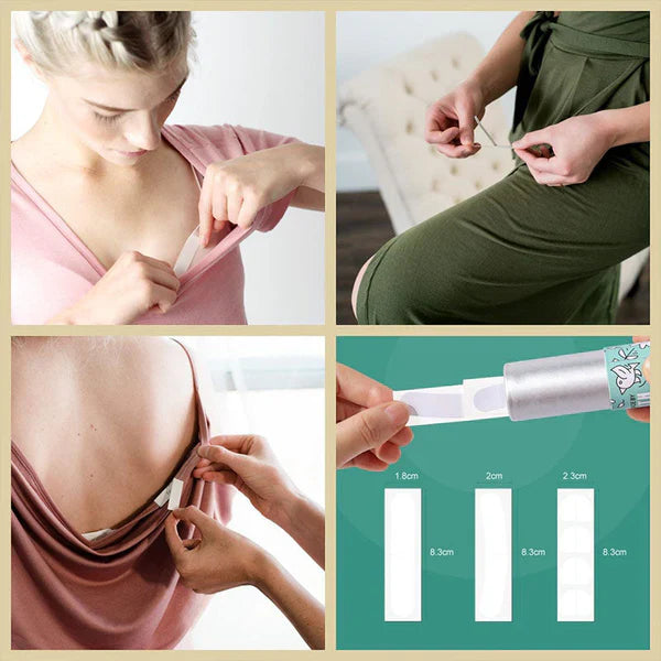 Ideal Design:Â Different from ordinary double-sided tape, this garment tape can fix any garment anywhere on your body you want, and it is skin-friendly and breathable, and will not cause allergies.