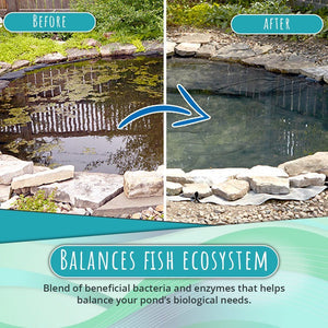 - Balances fish ecosystem - Blend of beneficial bacteria and enzymes that helps balance your pondâs biological needs.