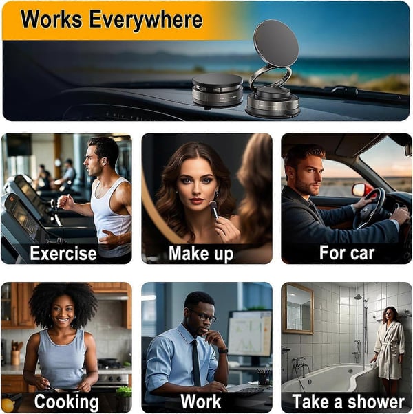 Multi-Scene Adaptability: Beyond serving as an excellent magnetic car phone holder, this vacuum phone holder also performs exceptionally well on smooth walls and mirrors. Whether you are cooking or bathing, it provides unparalleled convenience and support, freeing your hands and enhancing your daily life experience.