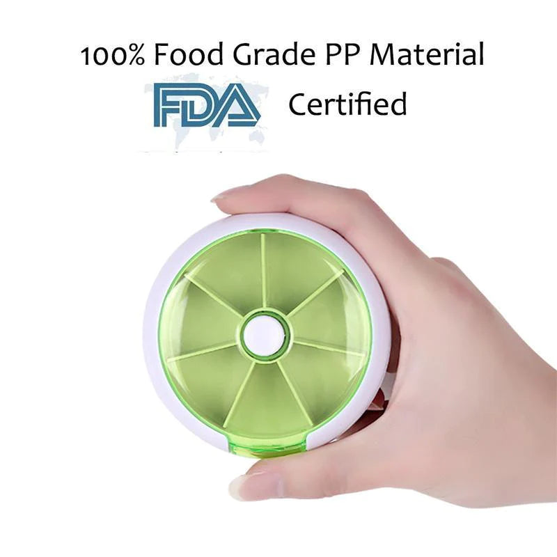 Rotate Design: By opening the lid next to it and pressing the top button, the compartment will switch to the next one so that the pills you need are got smoothly.
