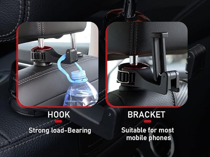 - π 2-in-1 Car Seat Hooks: The car seat hooks can not only hang things, but can also be used as a mobile phone holder. The universal car seat hook holder can be expanded and tightened according to the size of the mobile phone. The car seat hooks is an ideal choice to watch videos in the back seat with a mobile phone.