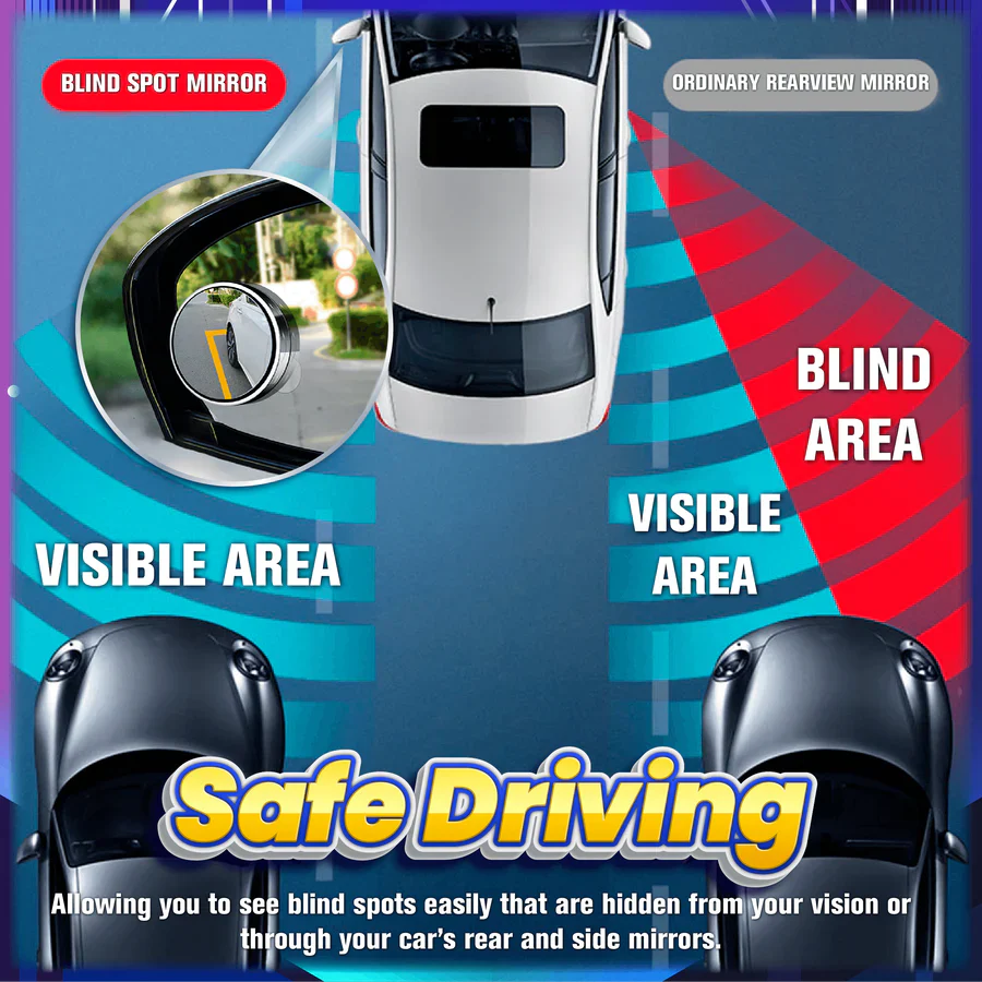 A unique anti-collision curved mirror that effectively expands the driver’s visual range without any types of disruptions. Allowing you to see blind spots easily that are hidden from your vision or through your car’s rear and side mirrors. It features a 360° rotation and a press type 30° sway adjustment that offers extra visibility to stay safe on the road! You can now switch lanes, park, reverse, overtake, check roads and more without any blind spot accident!