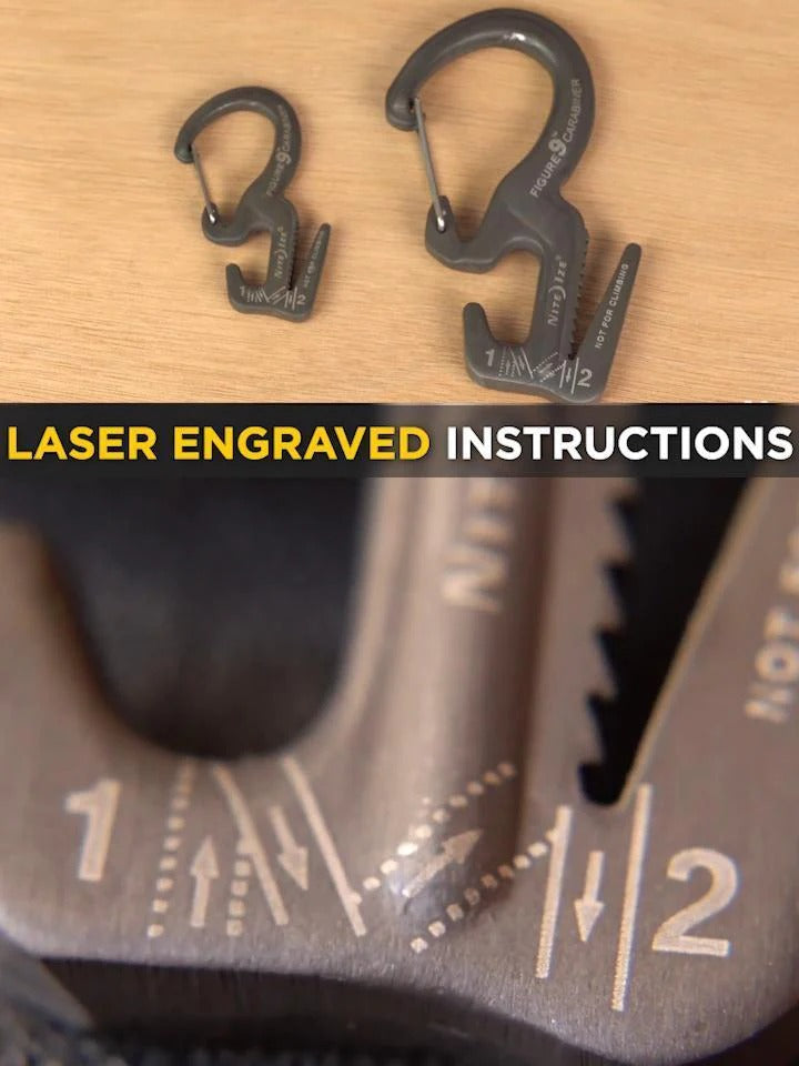 The award-winning design of our Figure 9s let you tension lines without using any knots or complicated techniques, plus this one has the added benefit of a carabiner for quick connection to a fixed end point - LASER ENGRAVED INSTRUCTIONS
