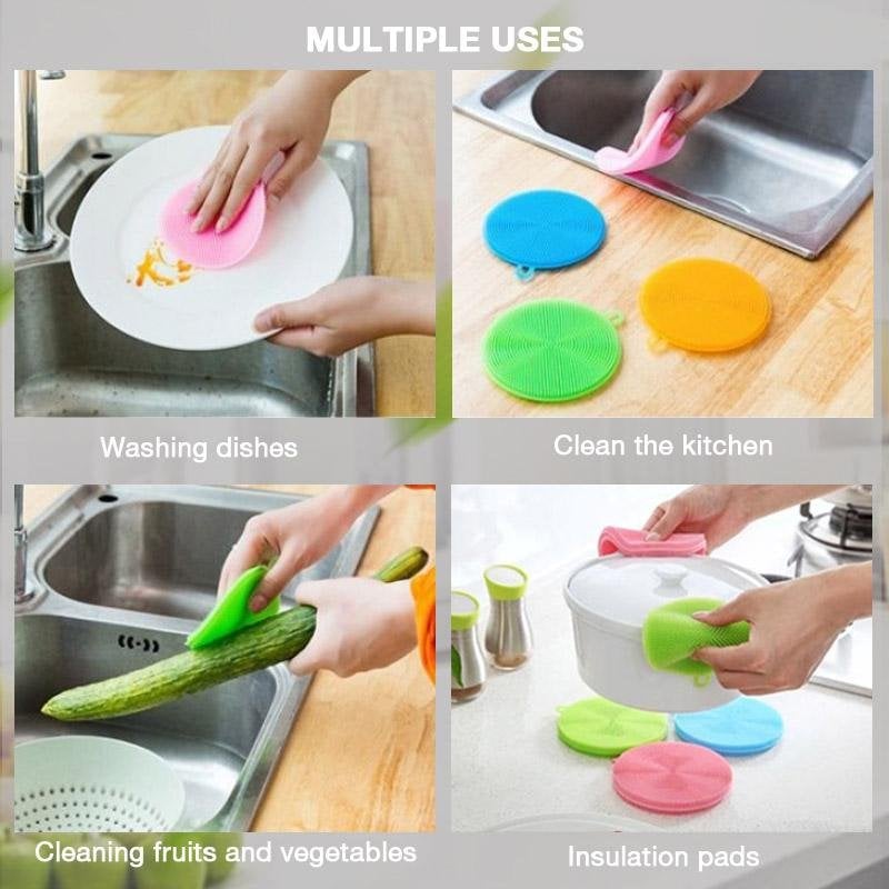 Multiple Uses: The silicone washing brush Versatile design can also be used as a heat resistant pot holder. It does help open your glass bottles and easily removes pet hair. It does clean your dishes just like an ordinary sponge because the texture is good. These Kitchen Sponges can be also used to clean makeup brushes and even you can use it for the shower.