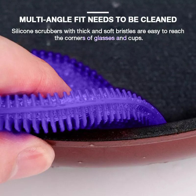 - High Quality:Â Silicone kitchen scrubber is made of environment-friendly silicone, which is BPA-free and FDA-approved and LFGB standard. Silicone scrubbers with thick and soft bristles are easy to reach the corners of glasses and cups.