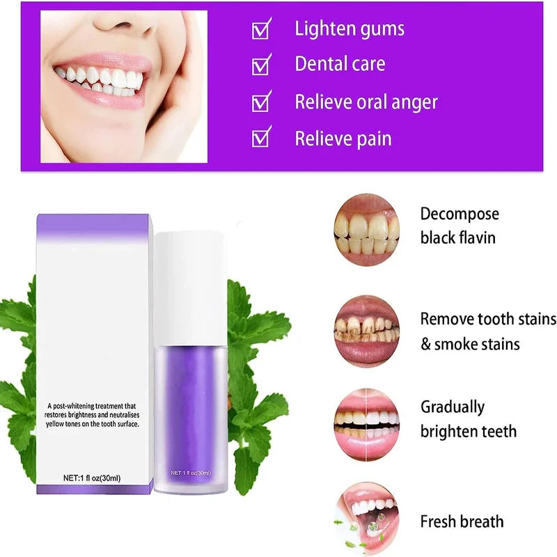 Deep Clean Teeth - Purple teeth whitening toothpaste penetrates the gaps in the enamel to remove food particles and deep stains embedded in them. Leave no residue, help effectively clean your teeth and make your smile more beautiful.