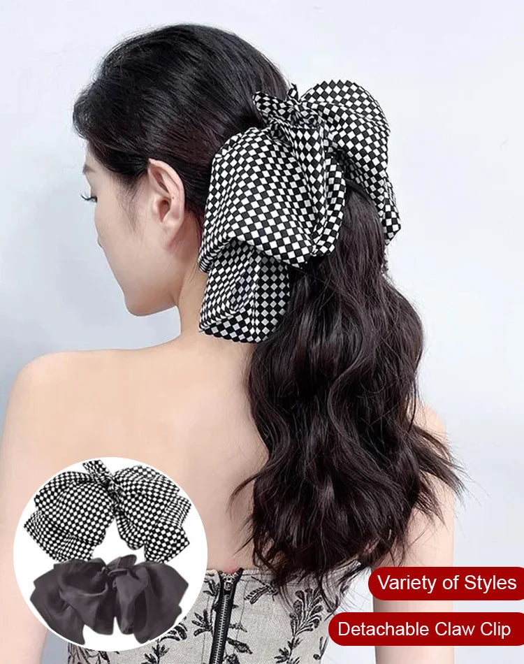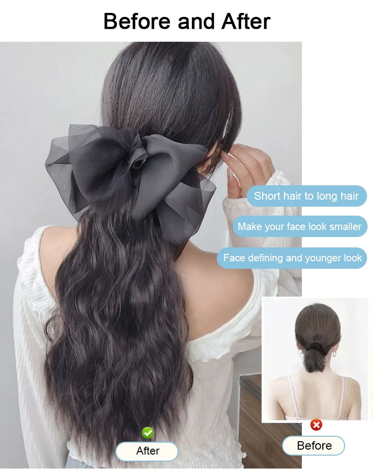 [Gentle and Sweet] Natural Wavy Claw Clip Ponytail Hair Extensions with Bowknot