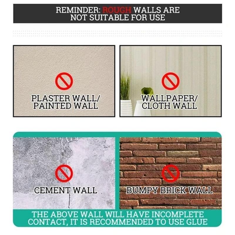 - Available Anywhere: Suitable for all kinds of walls, such as ceramic tiles, marble, stainless steel, glass, solid wood walls, and other smooth walls. Reminder: rough walls are not suitable for use.