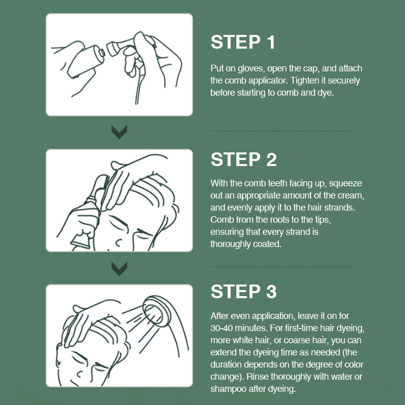 - NO MIXING, COMBS & DYE: Forget complicated mixing. With our fruit extract hair dye with built-in comb, you can simply brush and comb your hair to get your desired color in the comfort of your own home.