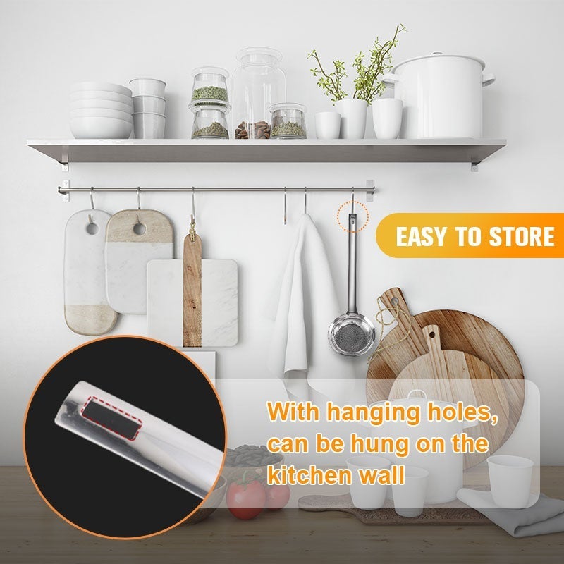 - The end of the handle is designed with a hanging hole, which can be hung on the kitchen wall, which is easy to organize and does not take up any additional space.