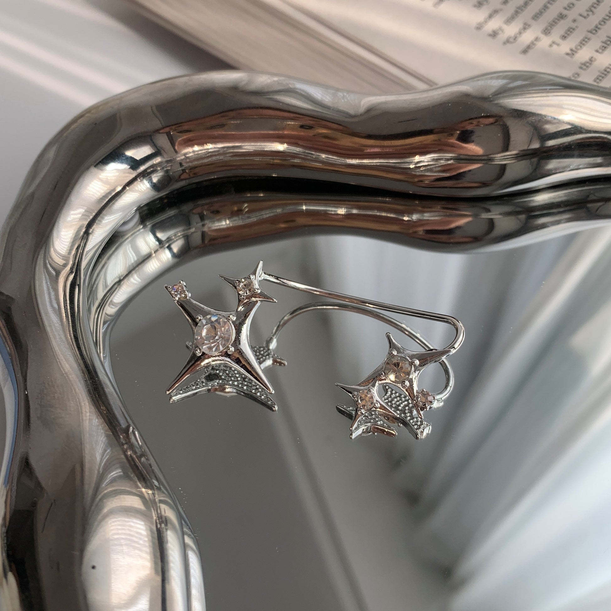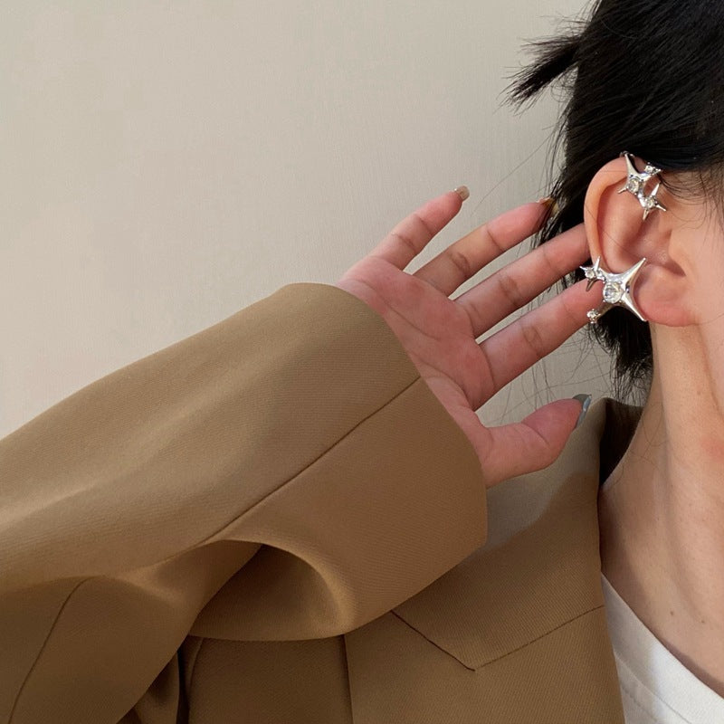 Super Sparkle Diamond Cross Star Ear Clip Earrings