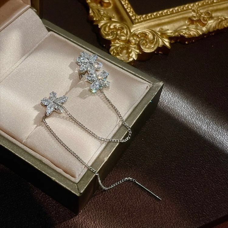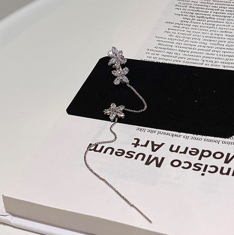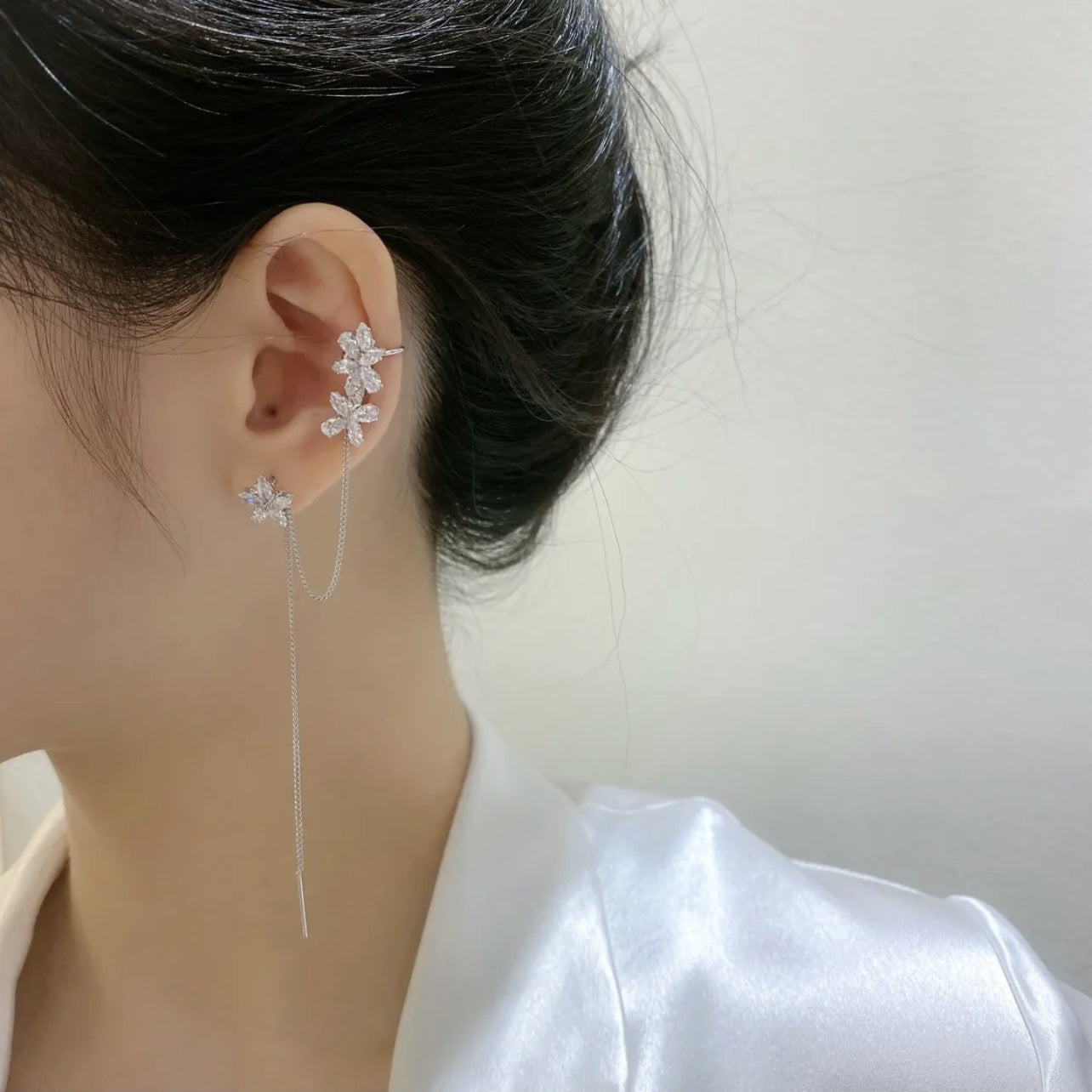 Temperament Flower Zircon Long Chain Ear Cuff Earrings