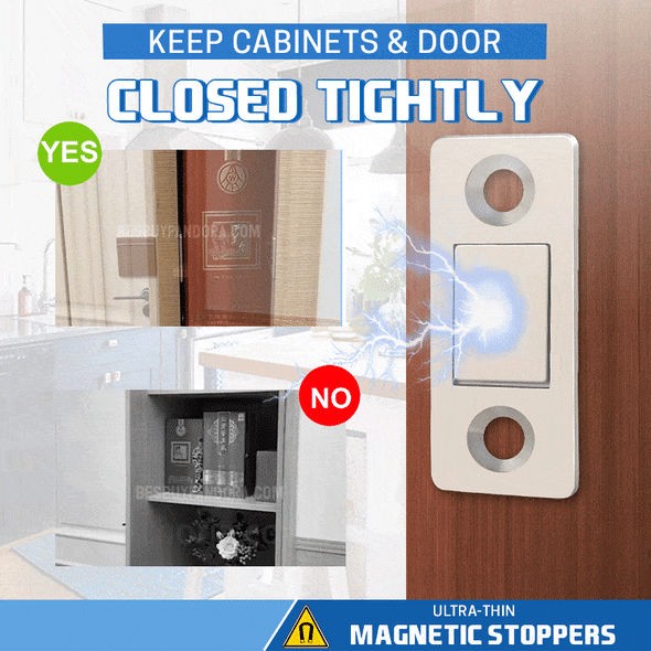 No more drilling on the door stoppers! This Ultra-thin Magnetic Door Stoppers features strong magnetic force and ensures your cabinet doors and drawers are no longer loose!