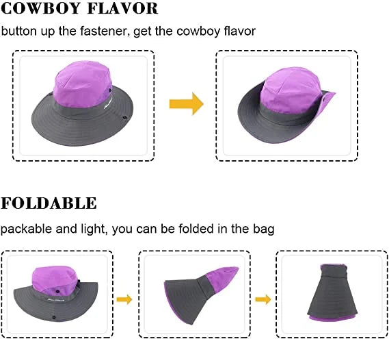 Outdoor sun hat is made of high-quality waterproof polyester, quick-drying, lightweight and breathable. Wide brim summer beach hat will provide the optimal protection against harmful UV rays and effectively protect your skin from sunshine.