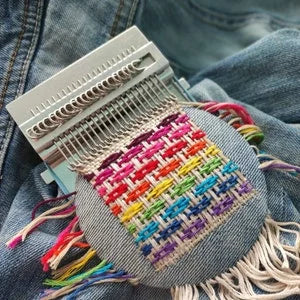 ✨ Easy to Use - Just stretch the fabric over the tool, use the rubber bands to fix the fabric and loom in place, set up your warps, and get weaving.